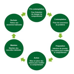 Prenez conscience que la rechute n’est pas un échec et qu’elle fait partie intégrante du processus de changement, comme l’ont montré les psychologues Prochaksa et Di Clemente à la fin des années 1970 avec leur modèle en six stades :