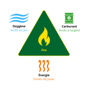 On peut comparer le jeu à un feu. Pour qu’il brûle, il a besoin de trois éléments :