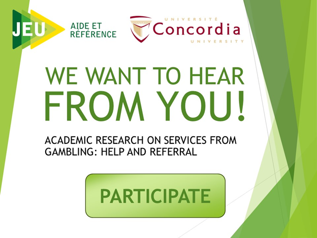The Québec gambling helpline Gambling: Help and Referral has partnered with the Research Chair on Gambling at Concordia University to conduct research about their services.
