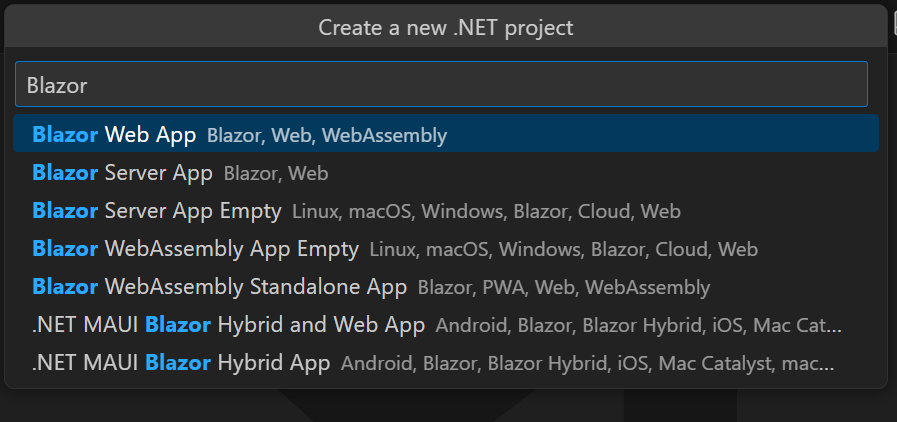 BlazorAppin the command palette when prompted. Press Enter to confirm.
