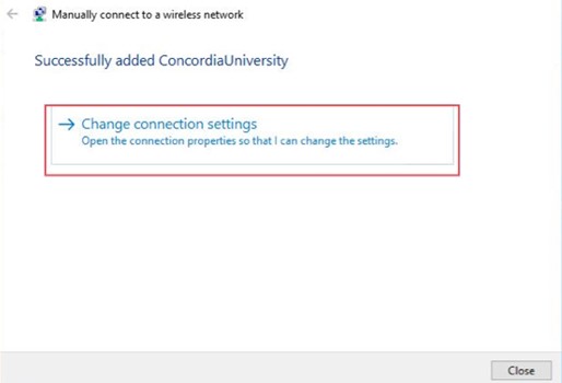 5. Another window should open stating that you have successfully added ConcordiaUniversity. Select ‘Change connection settings