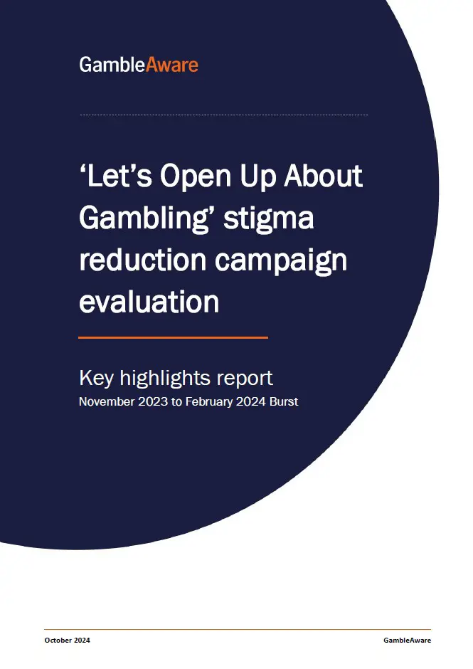 GambleAware. Let's Open Up About Gambling: Stigma reduction campaign evaluation (2024) https://www.gambleaware.org/our-research/publication-library/articles/lets-open-up-about-gambling-stigma-reduction-campaign-evaluation/