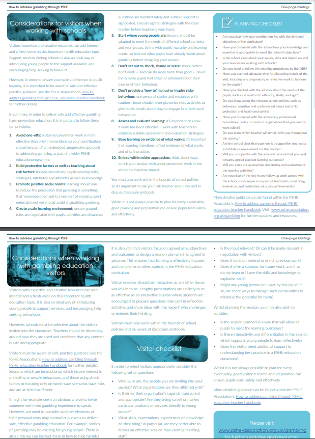 This set of four one-page briefings from the PSHE Association in partnership with GambleAware covers a selection of key content from the teacher handbook.